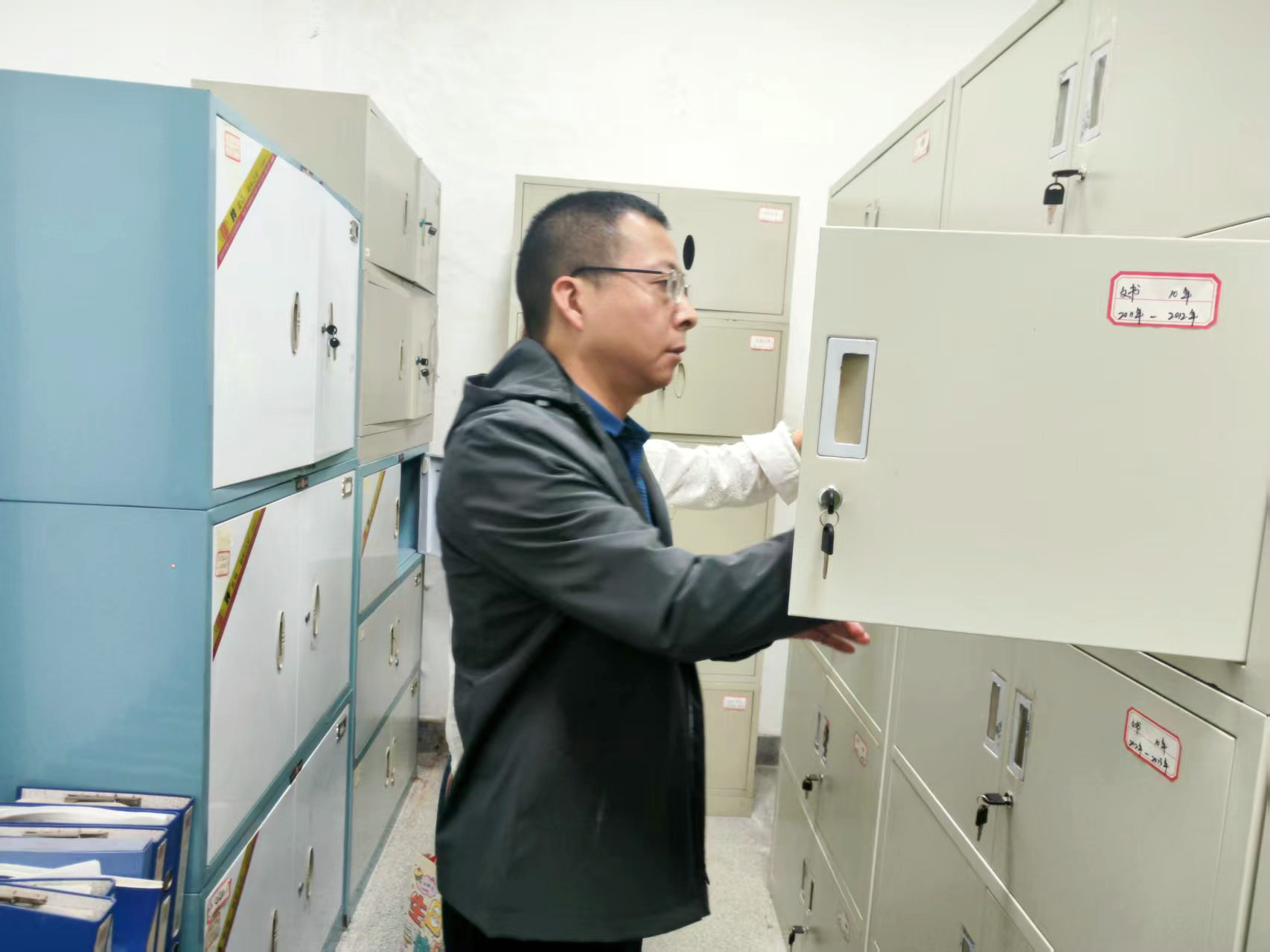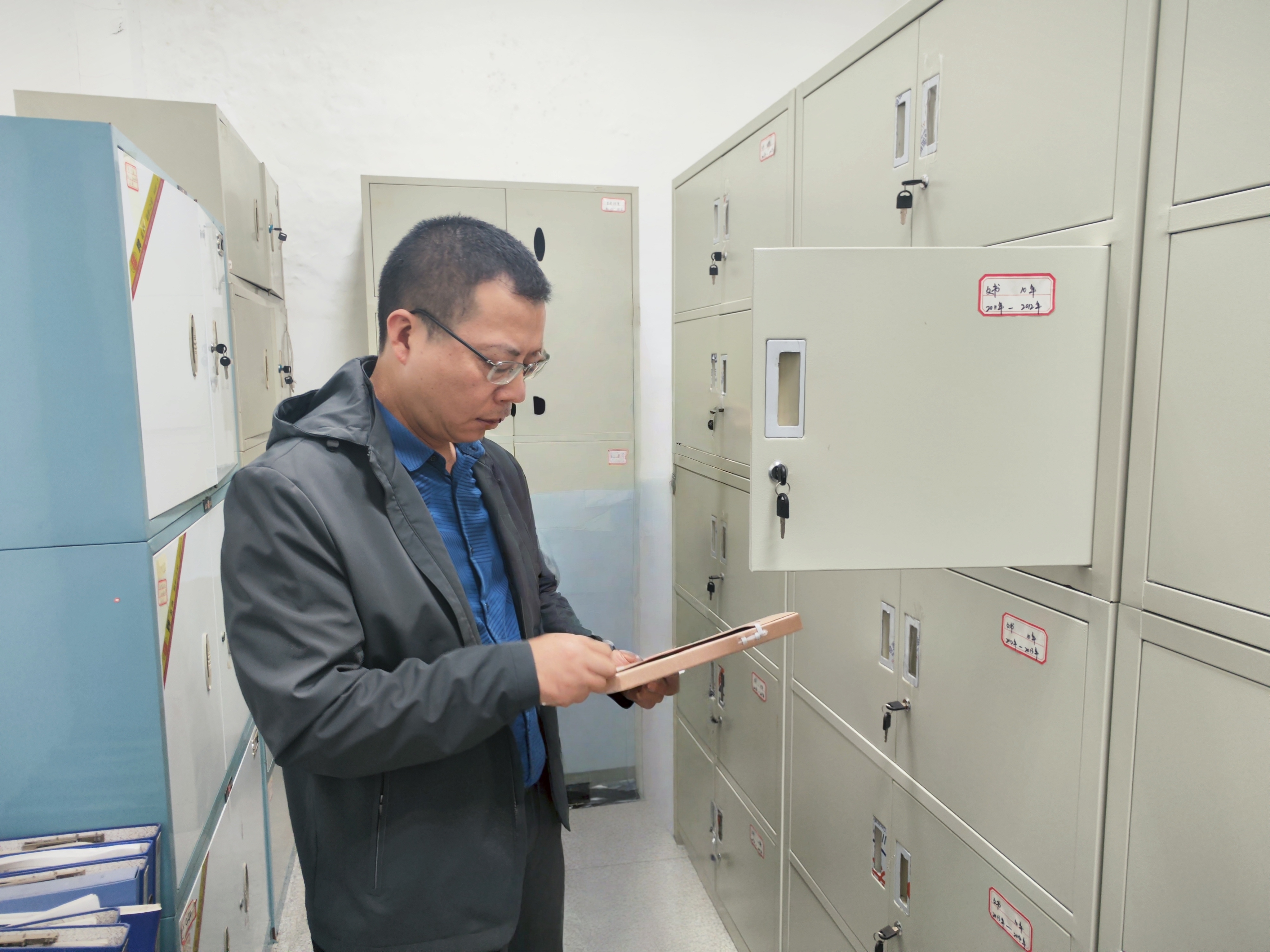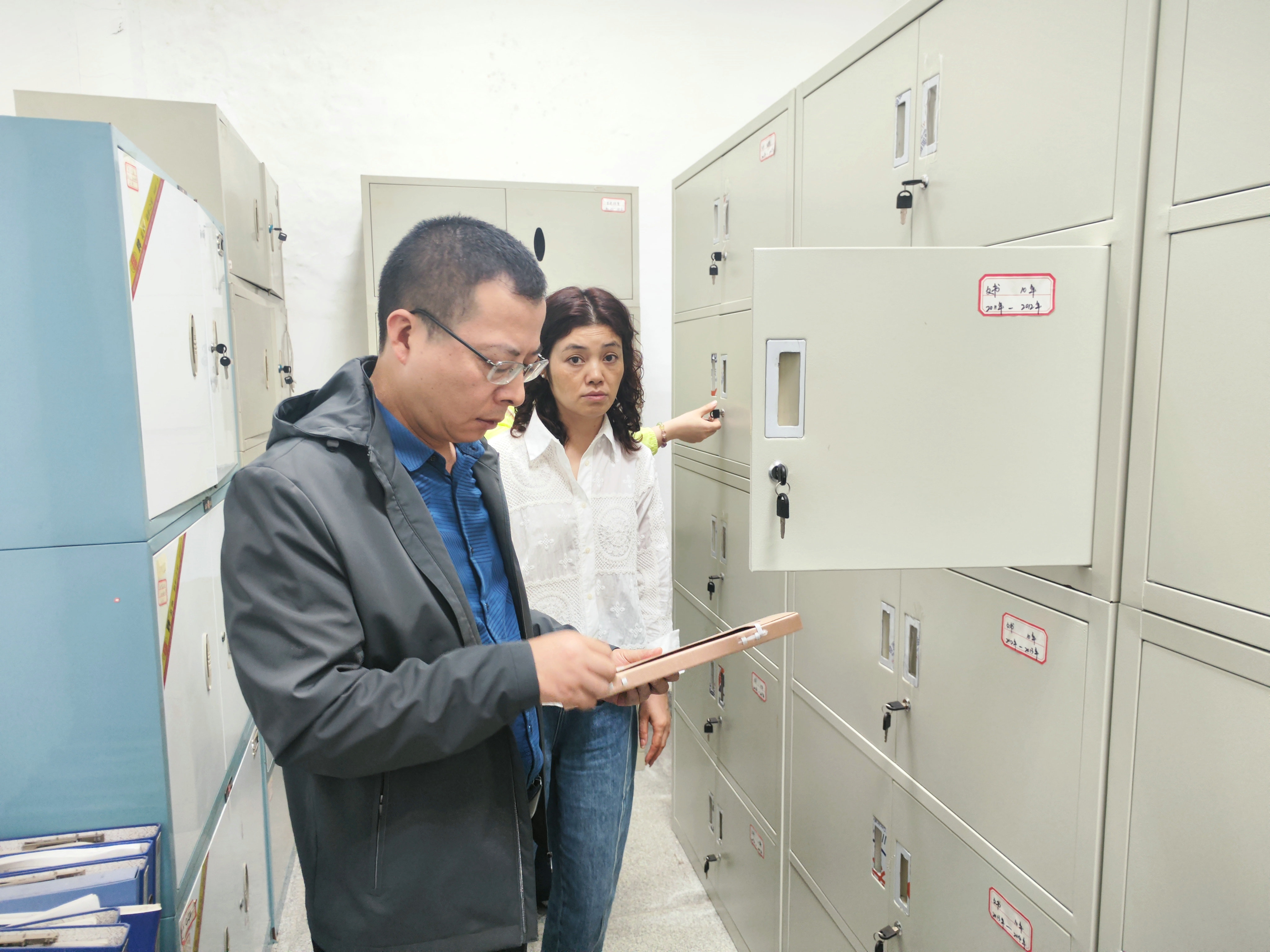 調(diào)研現(xiàn)場,朱亞成一行先后查看了檔案室基礎(chǔ)設(shè)施建設(shè)、安全防護(hù)和視頻監(jiān)控等相關(guān)情況,重點(diǎn)抽查了各類檔案的歸檔、存儲、保管及查閱使用情況,全面掌握當(dāng)前檔案管理工作的實(shí)際現(xiàn)狀。