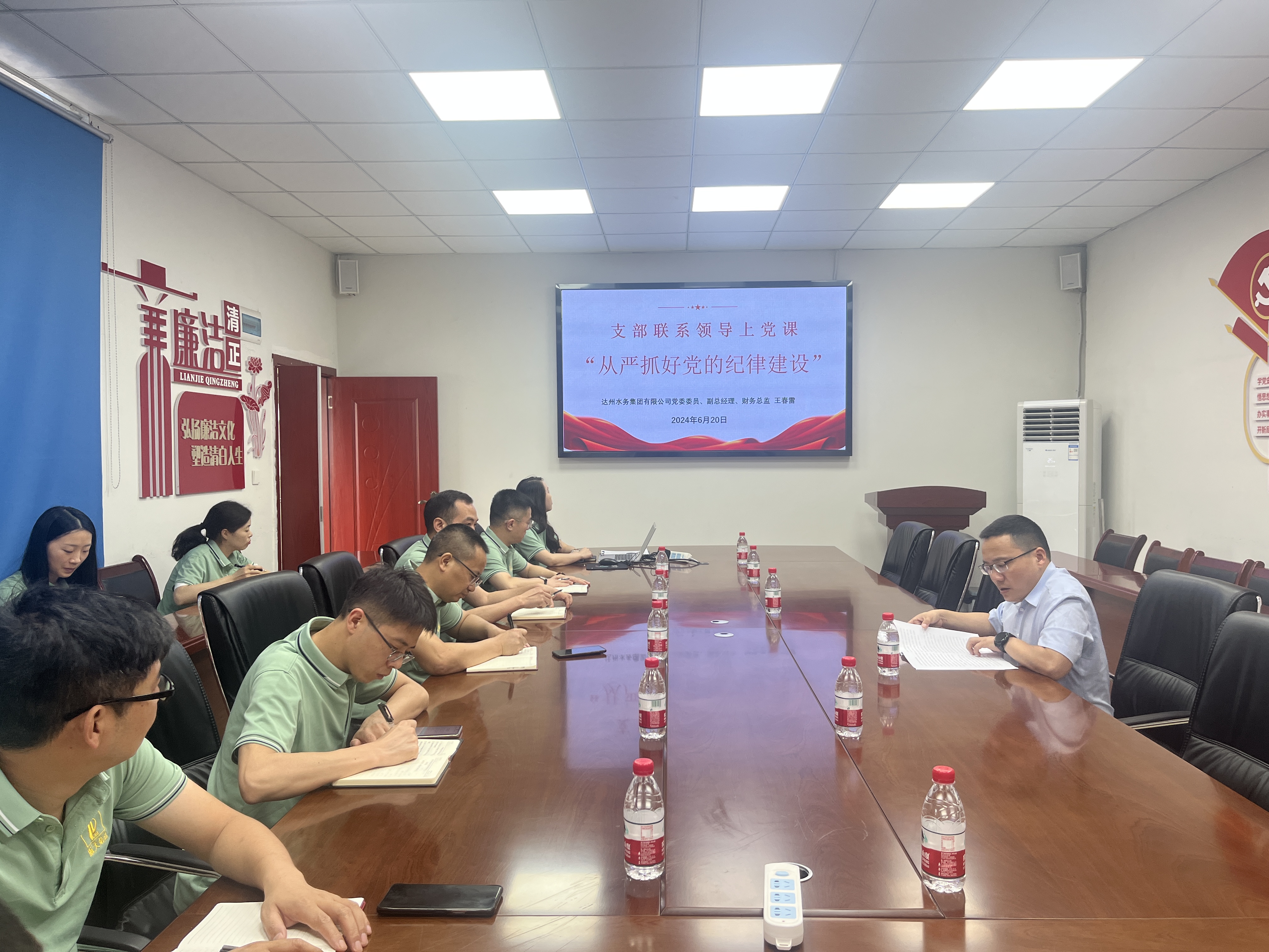 在講專題黨課活動(dòng)中,班子成員深入聯(lián)系支部,圍繞 新質(zhì)生產(chǎn)力推進(jìn)公司高質(zhì)量發(fā)展、從嚴(yán)抓好黨的紀(jì)律教育等內(nèi)容為全體黨員干部講了生動(dòng)而富有教育意義的專題黨課。同時(shí)強(qiáng)調(diào),全體黨員干部特別是中層管理人員及重點(diǎn)崗位工作人員,要堅(jiān)持把嚴(yán)明政治紀(jì)律和嚴(yán)守政治規(guī)矩?cái)[在突出位置,增強(qiáng)自檢自查意識(shí),通過黨紀(jì)學(xué)習(xí)教育,不斷學(xué)紀(jì)、知紀(jì)、明紀(jì)、守紀(jì),做到自身正、自身硬、自身凈。切實(shí)將廉潔從業(yè)的意識(shí)內(nèi)化于心,外化于行,以過硬的本領(lǐng)、扎實(shí)的作風(fēng),為集團(tuán)公司高質(zhì)量發(fā)展注入不竭動(dòng)力。