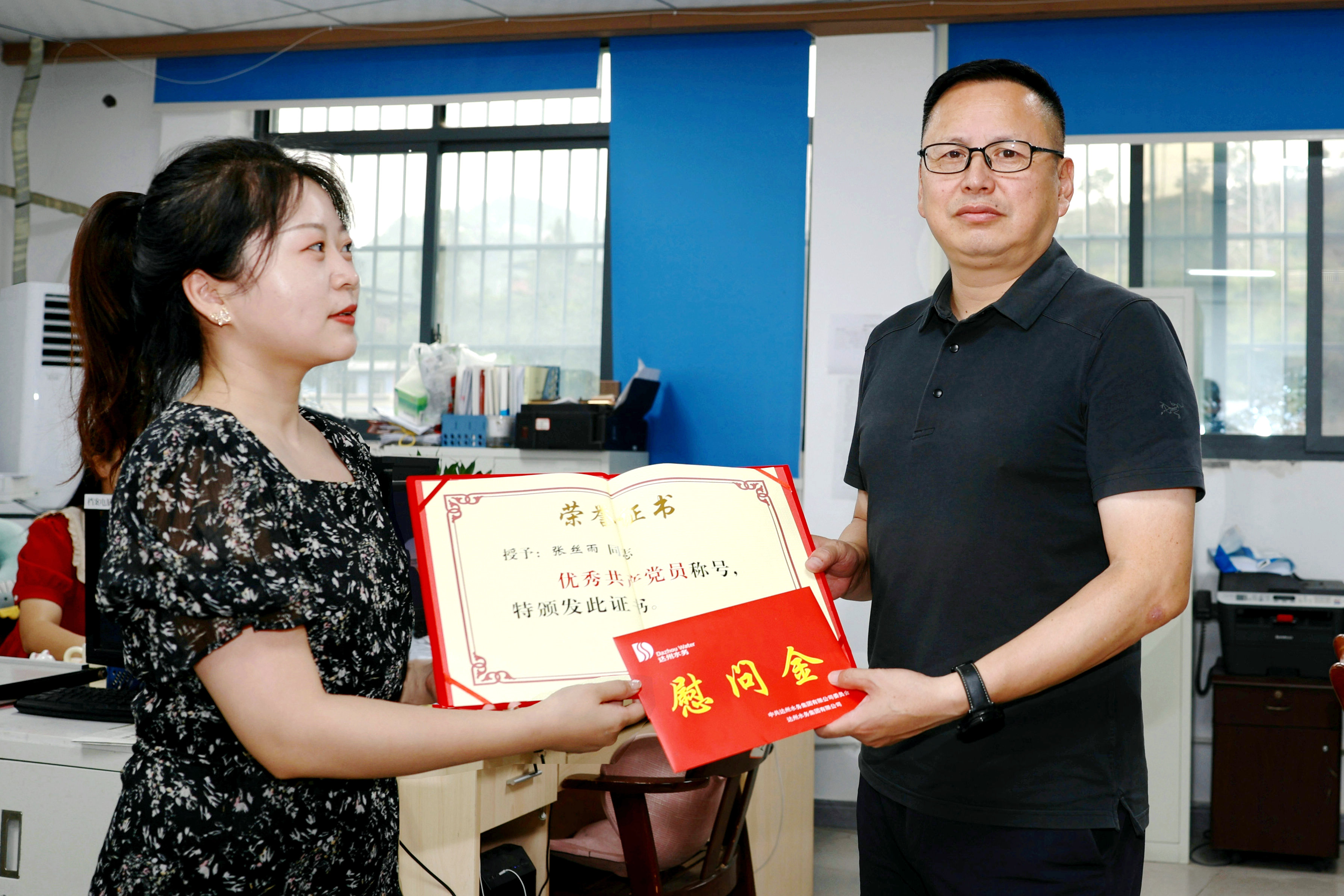 支部聯(lián)系領(lǐng)導(dǎo)向獲2024年集團(tuán)公司優(yōu)秀共產(chǎn)黨員及優(yōu)秀黨務(wù)工作者頒發(fā)榮譽(yù)證書(shū),向受到表彰的優(yōu)秀個(gè)人送上熱烈祝賀,也希望獲獎(jiǎng)同志能夠更好發(fā)揮黨員先鋒模范作用,全體黨員要以先進(jìn)典型為榜樣,向優(yōu)秀代表看齊,在創(chuàng)建高質(zhì)量達(dá)州水務(wù)新征程上彰顯更強(qiáng)擔(dān)當(dāng)、展現(xiàn)更大作為。