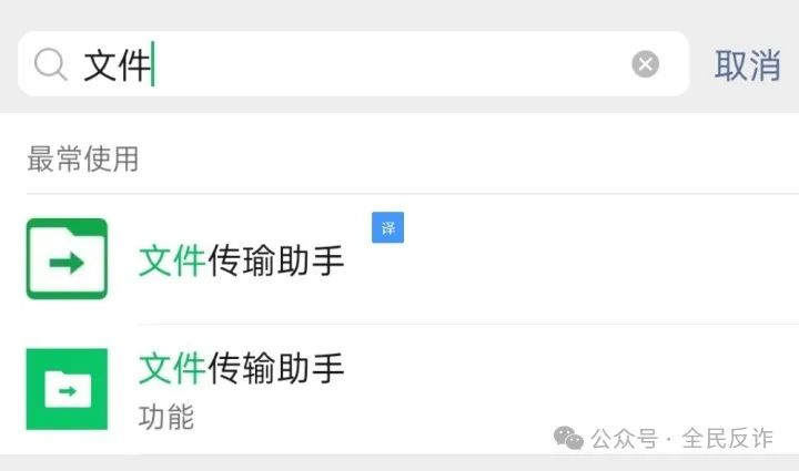 有網(wǎng)友建議:搜索的時候,正常“文件傳輸助手”顯示在功能里,假的在聯(lián)系人里。