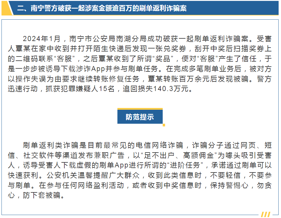 7月10日,自治區(qū)公安廳召開廣西公安機關(guān)打擊整治電信網(wǎng)絡(luò)新型違法犯罪新聞發(fā)布會,發(fā)布四起典型案例。