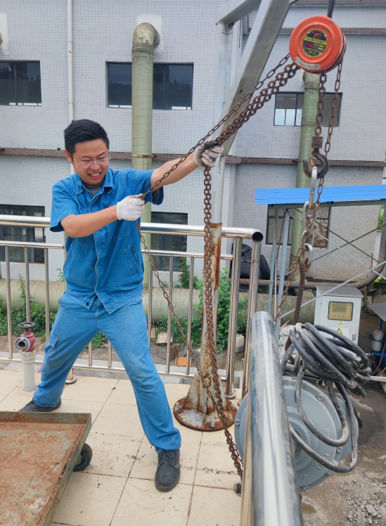 污水設(shè)備維修事務(wù)雜、任務(wù)多、責(zé)任重、環(huán)境惡劣,只有細(xì)致規(guī)劃,安全操作,才能保質(zhì)保量完成維修任務(wù),很多維修員不愿從事或堅(jiān)持。余昊不忘初心,發(fā)揮所學(xué)的專業(yè)優(yōu)勢(shì),扎根污水處理一線,理論聯(lián)系實(shí)際,發(fā)揮新時(shí)代黨員先鋒模范作用,始終盡職盡責(zé),無論是日常工作任務(wù)還是臨時(shí)的緊急任務(wù)他始終以積極的態(tài)度對(duì)待每一個(gè)任務(wù)。2023年“五一”期間,文家梁泵站入水口井下20米液動(dòng)閥門無法開啟嚴(yán)重會(huì)導(dǎo)致污水溢流。在人員不足的情況下,他毅然放棄假期立即投入維修工作。組織維修物資轉(zhuǎn)運(yùn),建立安全通風(fēng)設(shè)施,保障安全作業(yè),通過兩晝夜的奮戰(zhàn)及時(shí)更換了液動(dòng)閥門,保障了廠區(qū)生產(chǎn)。